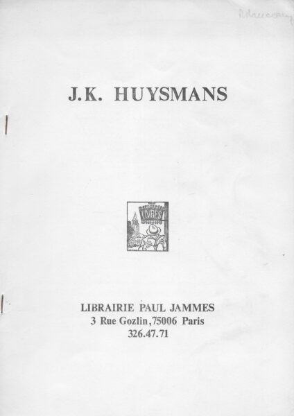 Catalogue d’œuvres de et sur J.-K. Huysmans