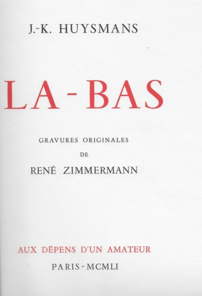 Là-Bas Illustrations de René Zimmermann Editions Aux dépens d’un amateur, n° 175/225, 1951 – 32 x 26 cm – 353 p.