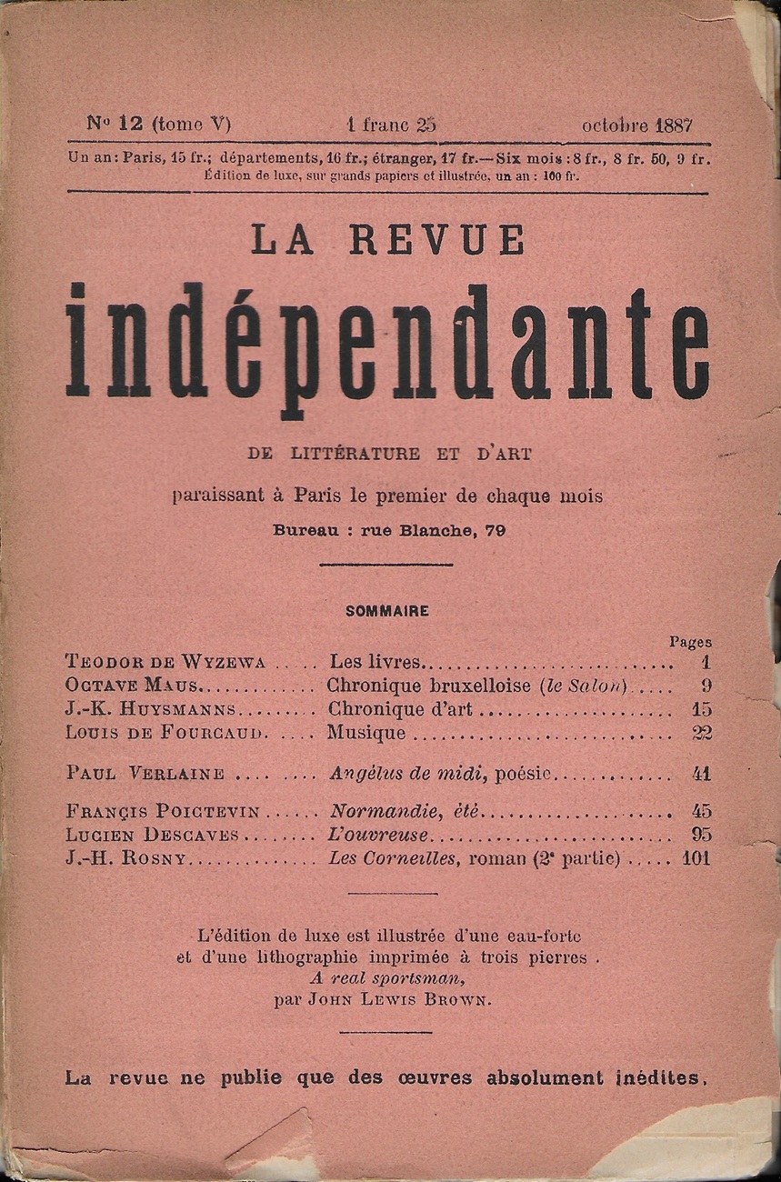 « Chronique d’art : le Tableau de Bianchi au Louvre » par Joris-Karl HUYSMANS, tome V, pp. 15-21, octobre 1887 – 19 x 12.5 cm