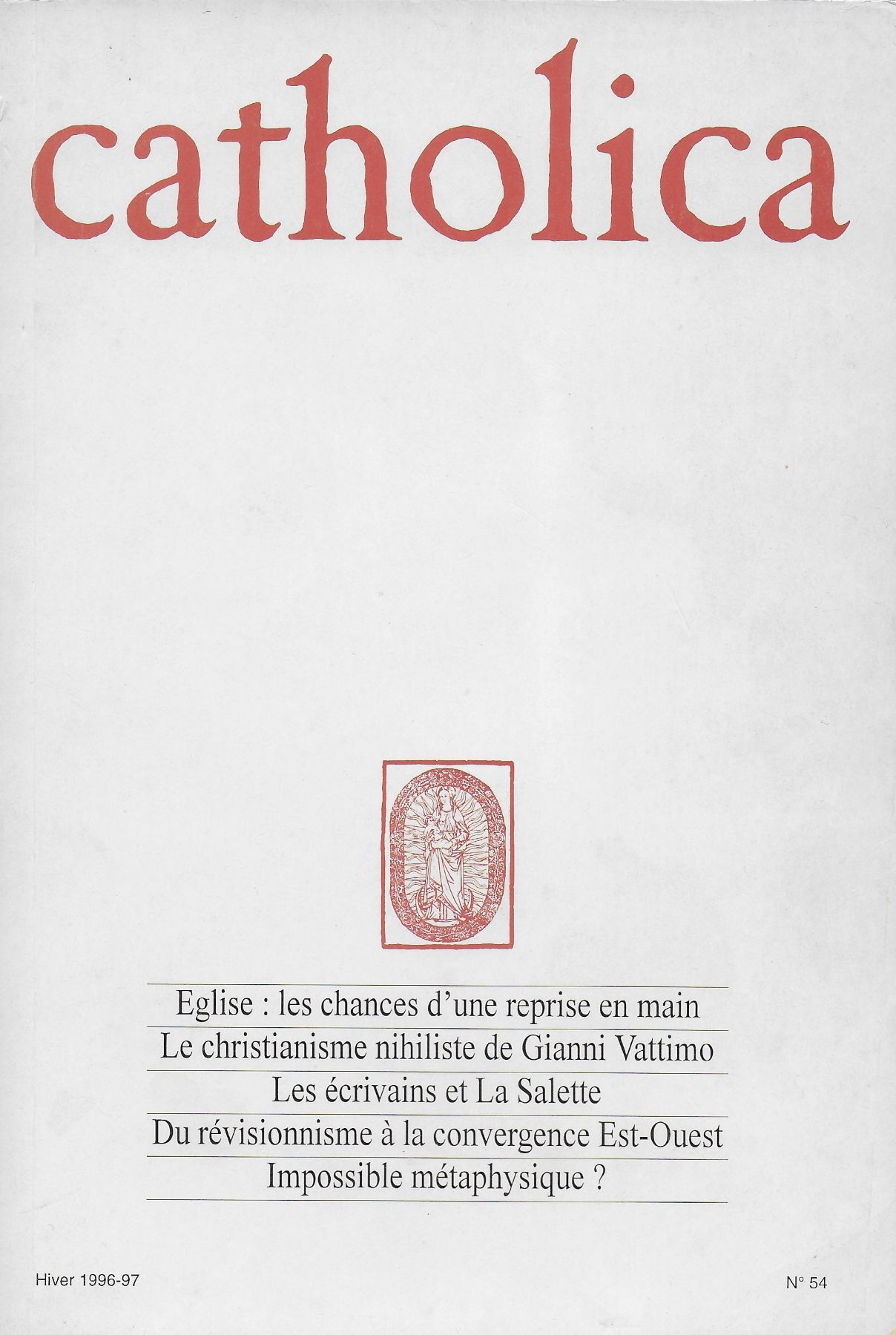 Catholica n° 54 Dominique MILLET-GERARD « Les Ecrivains et La Salette », p. 76-92, hiver 1996 / 1997 – 23 x 15.5 cm