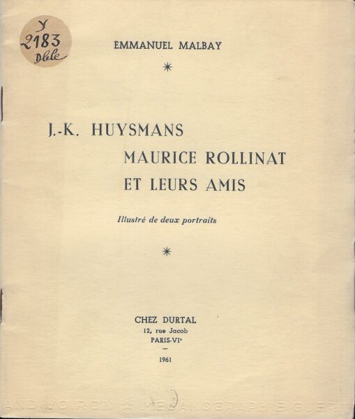 Editions Chez Durtal, n° 52 / 200, Paris, 1961 – 20 x 16.8 cm – 17 p.