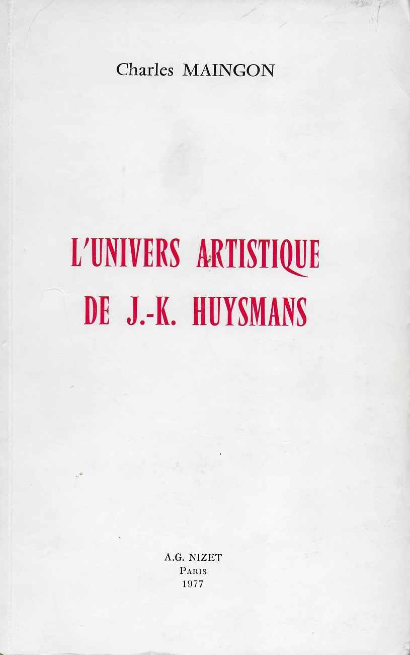 L’Univers artistique de J.-K. Huysmans Charles MAINGON Editions A. G. Nizet, 1977 – 22.5 x 14 cm – 226 p.
